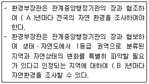 자연환경조사에 관한 설명의 A, B에 적합한 조사주기를 순서대로 작성한 것은?