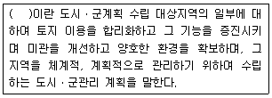다음은 국토의 계획 및 이용에 관한 법률상 이법에서 사용하는 용어의 뜻에 관한 사항이다. ( )안에 알맞은 것은?