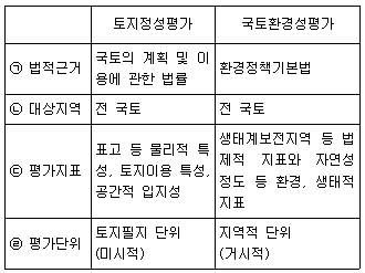 토지적성평가와 국토환경성평가를 비교하여 설명한 내용이 틀린 것은?