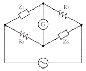 그림과 같은 브리지가 평형되기 위한 임피던스 Zx의 값은 약 몇 Ω인가? (단, Z1=3+j2Ω, R2=4Ω, R3=5Ω이다.)
