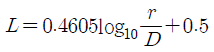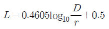선간거리 D(m)이고, 반지름이 r(m)인 선로의 인덕턴스 L(mH/km)은?