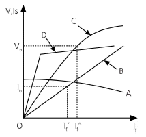 그림은 동기발전기의 특성을 나타낸 곡선이다. 단락곡선은 어느 것인가? (단,Vn은 정격전압, In 정격전류, If 계자전류, Is는 단락전류이다.)