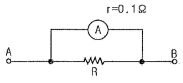 그림과 같이 내부저항 0.1Ω, 최대지시 1A의 전류계 에 분류기 R를 접속하여 측정범위를 15A로 확대하려면 R의 저항값은 몇 Ω으로 하면 되는가?
