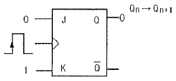 J-K FF에서 현재상태의 출력 Qn을 0으로 하고, J입력에 0, K입력에 1, 클럭펄스 C.P에