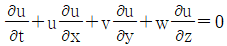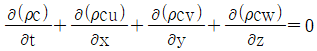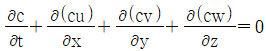 다음 중 연속방정식이 아닌 것은? (단, x, y, z : 좌표, u , v, w : 유속, ρ : 밀도, c : 농도, t : 시간)