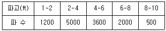 주기에 대한 파기록이 다음과 같다. Rayleigh 분포에 의한 5 ft파의 발생빈도는?