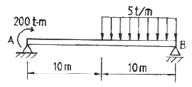 그림과 같은 구조물에서 A점에서의 수직반력의 크기는?