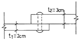 다음 그림과 같은 1면 전단의 리벳이음으로 40t의 인장하중을 지지하려고 할 때 필요한 리벳의 개수는? (단, 리벳의 허용전단응력은 1500 kg/cm2, 허용지압응력은 2000kg/cm2, 리벳의 직경은 2cm 이다.)