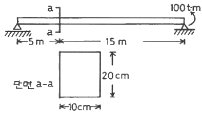 아래의 구조물에서 단면 a-a에 발생하는 최대 휨응력의 크기는?