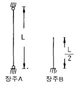 다음과 같은 장주 A가 견딜 수 있는 최대압축력의 크기가 100t이라 할 때 같은 단면을 가진 장수 B가 견딜 수 있는 압축력의 크기는?