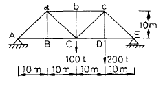 다음과 같은 트러스의 ab부재의 부재력의 크기는?