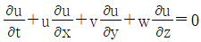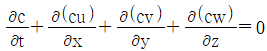 다음 중 연속방정식이 아닌 것은? (단, x, y, z : 좌표, u, v, w : 유속, ρ : 밀도, c : 농도, t : 시간)