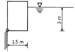 그림과 같은 직사각형 단면 수문의 3m 까지 물이 차있다. 이 때 단위 폭 당 수문에 작용하는 전수압은?