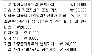 (주)감평은 확정급여제도를 운영하고 있으며, 20x1년도 관련 자료는 다음과 같다. 20x1년도 기타포괄손익으로 인식할 확정급여채무의 재측정요소는?