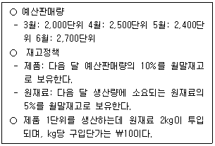 다음은 (주)감평의 20x1년 상반기 종합예산을 작성하기 위한 자료의 일부이다. 4월의 원재료 구입예산액은?