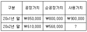 20x2년 말 기계장치의 사용가치는?(문제 오류로 가답안 발표시 4번으로 발표되었지만 확정답안 발표시 모두 정답처리 되었습니다. 여기서는 가답안인 4번을 누르면 정답 처리 됩니다.)
