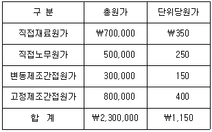 레저용 요트를 전문적으로 생산ㆍ판매하고 있는 (주)감평은 매년 해당 요트의 주요 부품인 자동제어센서 2,000단위를 자가제조하고 있으며, 관련 원가자료는 다음과 같다.