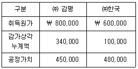 (주)감평은 (주)한국과 다음과 같은 기계장치를 상호 교환하였다.