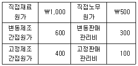 당기에 영업을 개시한 (주)감평은 제품 X 50단위를 단위당 ₩100에 판매하였으며, 기말제품수량은 10단위이다. 제품 X와 관련된 원가 자료가 다음과 같을 때 변동원가계산에 의한 영업이익은? (단, 기말재공품은 없다.)