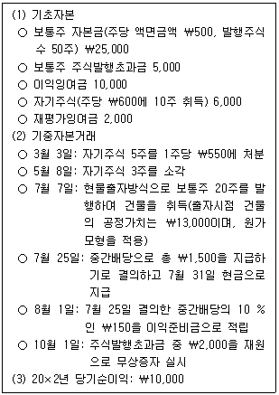 (주)감평의 20×2년 자본 관련 자료이다. 20×2년 말 자본총계는?
