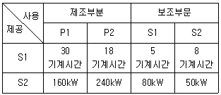 (주)감평은 두 개의 제조부문 P1, P2와 두 개의 보조부문 S1, S2를 통해 제품을 생산하고 있다. S1과 S2의 부문원가는 각각 ₩60,000과 ₩30,000이다. 다음 각 부문간의 용역수수 관계를 이용하여 보조부문원가를 직접배분법으로 제조부문에 배분할 때 P2에 배분될 보조부문원가는? (단, S1은 기계시간, S2는 kW에 비례하여 배분한다.)