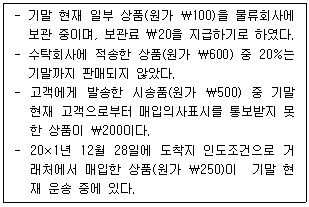 (주)감평의 창고에 보관 중인 20x1년 말 상품 재고실사 금액은 ₩2,840이다. 다음 자료를 반영한 이후 20x1년 말 재무상태표에 표시할 가말상품 금액온?