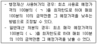 국유재산법령상 행정재산의 사용허가와 일반재산의 처분에 있어 두 번의 일반경쟁입찰에도 낙찰자가 없는 경우 세 번째 입찰부터의 예정가격 조정·결정의 방법에 관한 설명이다. ( )에 들어갈 숫자로 옳은 것은?