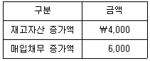 (주)감평의 매출액온 ₩215,000, 재고구입에 따른 현금유출액은 ₩120,000 이다. 다음 (주)감평의 재고자산, 매입채무 변동 자료를 이용할 경우, 매출총이익은?