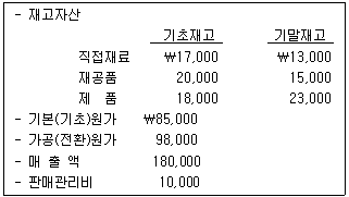 단일제품을 생산하는 (주)감평은 매출원가의 20%를 이익으로 가산하여 제품을 판매하고 있다. 당기의 생산 및 판매 자료가 다음과 같다면, (주)감평의 당기 직접재료매입액과 영업이익은? (순서대로 직접재료매입액, 영업이익)