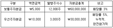20x1년 초 설립된 (주)감평의 20x3년 말 자본계정은 다음과 같으며, 설립 후 현재까지 자본금 변동은 없었다. 그 동안 배당가능이익의 부족으로 어떠한 형태의 배당도 없었으나, 20x3년 말 배당재원의 확보로 20x4년 3월 10일 정기 주주총회에서 ₩7,500,000의 현금배당을 선언할 예정이다. (주)감평이 우선주에 배분할 배당금은?