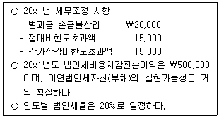 20x1년 초 설립한 (주)감평의 법인세 관련 자료이다. (주)감평의 20x1년도 유효법 인세율은? (단, 유효법 인세율은 법 인세비용을 법 인세 비용차감전순이익으로 나눈 값으로 정의한다.)