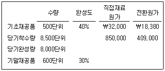(주)감평은 단일제품을 대량생산하고 있으며, 선입선출법에 의한 종합원가계산을 적용하고 있다. 직접재료원가는 공정 초에 전량 투입되며, 전환원가(conversion costs, 가공원가)는 공정 전반에 걸쳐 균등하게 발생한다. 품질검사는 생산공정의 50 % 시점에서 이루어지며, 당기 품질검사를 통과한 합격품의 3 %를 정상공손으로 간주한다. (주)감평의 20×1년의 생산 및 원가와 관련한 자료는 다음과 같다.