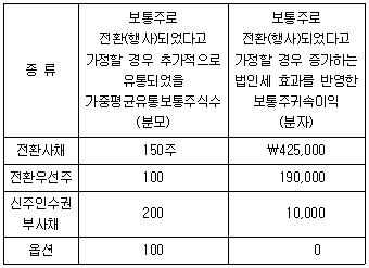 (주)감평의 20×1년 보통주에 귀속되는 당기순이익은 ₩1,000,000, 가중평균유통보통주식수는 100주, 중단사업손익은 없다. (주)감평이 희석주당이익을 계산할 때 필요한 자료는 다음과 같다.