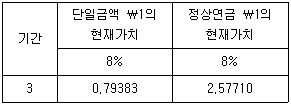 (주)감평은 20x1년 초에 하수처리장치를 ₩20,000,000에 구입하여 즉시 가동하였으며, 하수처리장치의 내용연수는 3년이고 잔존가치는 없으며 정액법으로 감가상각 한다. 하수처리장치는 내용연수 종료 직후 주변 환경을 원상회복하는 조건으로 허가받아 취득한 것이며, 내용연수 종료시점의 원상회복비용은 ₩1,000,000으로 추정된다. (주)감평의 내재이자율 및 복구충당부채의 할인율이 연 8%일 때, 20x1년도 감가상각비는? (단, 계산결과는 가장 근사치를 선택한다.)