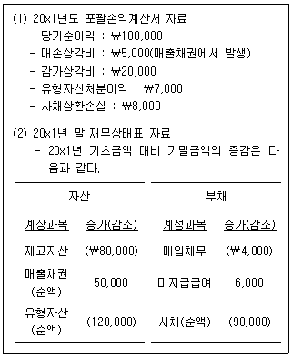 (주)감평의 20x1년도 영업활동순현금흐름은?