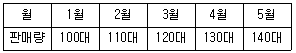 다음 표는 어느 자동차 영업소의 월별 판매실적을 나타낸 것이다. 5개월 단순이동 평균법으로 6월의 수요를 예측하면 몇 대인가?