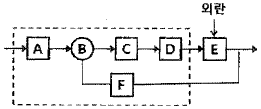그림과 같은 자동제어의 블록선도(block diagram) 중 A, C, D, F의 제어요소를 순서대로 배열한 것은?