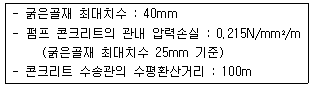 콘크리트 펌핑조건이 아래의 표와 같은 때 최대 소요압력(Pmax)을 대략적으로 구하면?