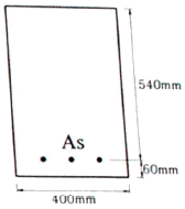 b=400mm, d=540mm, h=600mm인 직사각형 보에 인장철근이 1열 배근된 철근콘크리트 단면의 균형 단면 철근단면적(As)은? (단, fck=28MPa, fy=400MPa)
