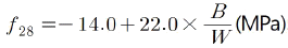 콘크리트 배합설계에서 실험으로부터 얻은 재령 28일 압축강도와 물-결합재비와의 관계식이