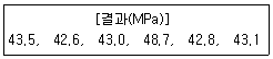 보통 포틀랜트 시멘트를 사용하여 재령 28일의 시멘트 모르타르 압축강도 시험(KS L ISO 6779)을 실시한 결과가 아래의 표와 같다. 이 시멘트 모르타르의 압축강도를 판별하면?