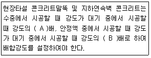 수중콘크리트에 대한 아래 표의 설명에서 ()에 알맞은 것은?