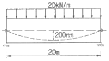 경간 20m에 등분포하중(자중포함) 20kN/m가 작용하는 프리스트레스 콘크리트 보에 P=2000kN의 긴장력이 주어질 때, 하중 평형개념에 의해 계산된 이 보의 순하량 분포하중은? (단, 긴장재는 포물선으로 배치되어 있으며, 새그는 200mm이다.)