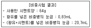 르샤틀리에 비중병에 의한 시멘트의 비중 시험결과가 아래의 표와 같을 때 시멘트의 비중은?
