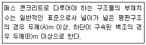 매스 콘크리트에 대한 아래 표의 설명에서 ()에 들어갈 알맞은 수치는?