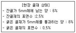 시방 배합설계 결과 잔골재량이 630kg/m3, 굵은 골재량이 1170kg/m3이었다. 현장의 골재 상태가 아래 표와 같을 때 현장 배합의 잔골재량과 굵은 골재량으로 옳은 것은?