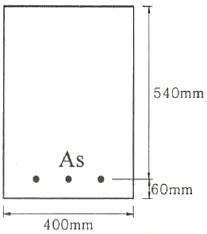 b=400mm, d=540mm, h=600mm 인 직사각형 보에 인장철근이 1열 배근된 철근콘크리트 단면의 휨부재 상한한계 공칭휨강도(Mn)는? (단 fck=28MPa, fy=500MPa)