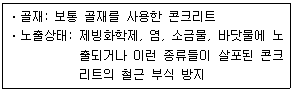 콘크리트의 배합설계에서 콘크리트의 내동해성을 기준으로 하여 물-결합재비를 정한 경우 아래 표와 같은 조건에서의 최소 설계기준압축강도는?