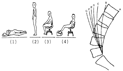 인체의 자세와 요추의 변화 중 그림 B에 해당되는 것은?