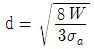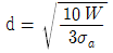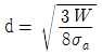 축 방향으로 인장하중만을 받는 수나사의 바깥지름(d)과 볼트재료의 허용인장응력(σa) 및 인장하중 (W)과의 관계가 옳은 것은? (단, 일반적으로 지름 3mm 이상인 미터나사이다.)